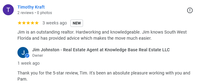 Hi, I’m Jim Johnston. My peers know me as a local Top-Tier SWFL real estate expert. My experience is in serving home buyers & sellers in all of SW Florida including Naples, Bonita Springs, Estero, Marco Island, Ft. Myers Beach, Ft. Myers, and Cape Coral.